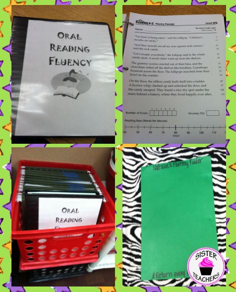 Reading A-Z website, it's a must see. There are so many resources there... it's definitely worth the subscription! The picture below shows my binder {I have to make it a lot cuter!}, an example of a fluency sheet, the crate that I keep all of my reading passages in, and my students' fluency folder. This is definitely my tried and true method for improving oral reading fluency each year.